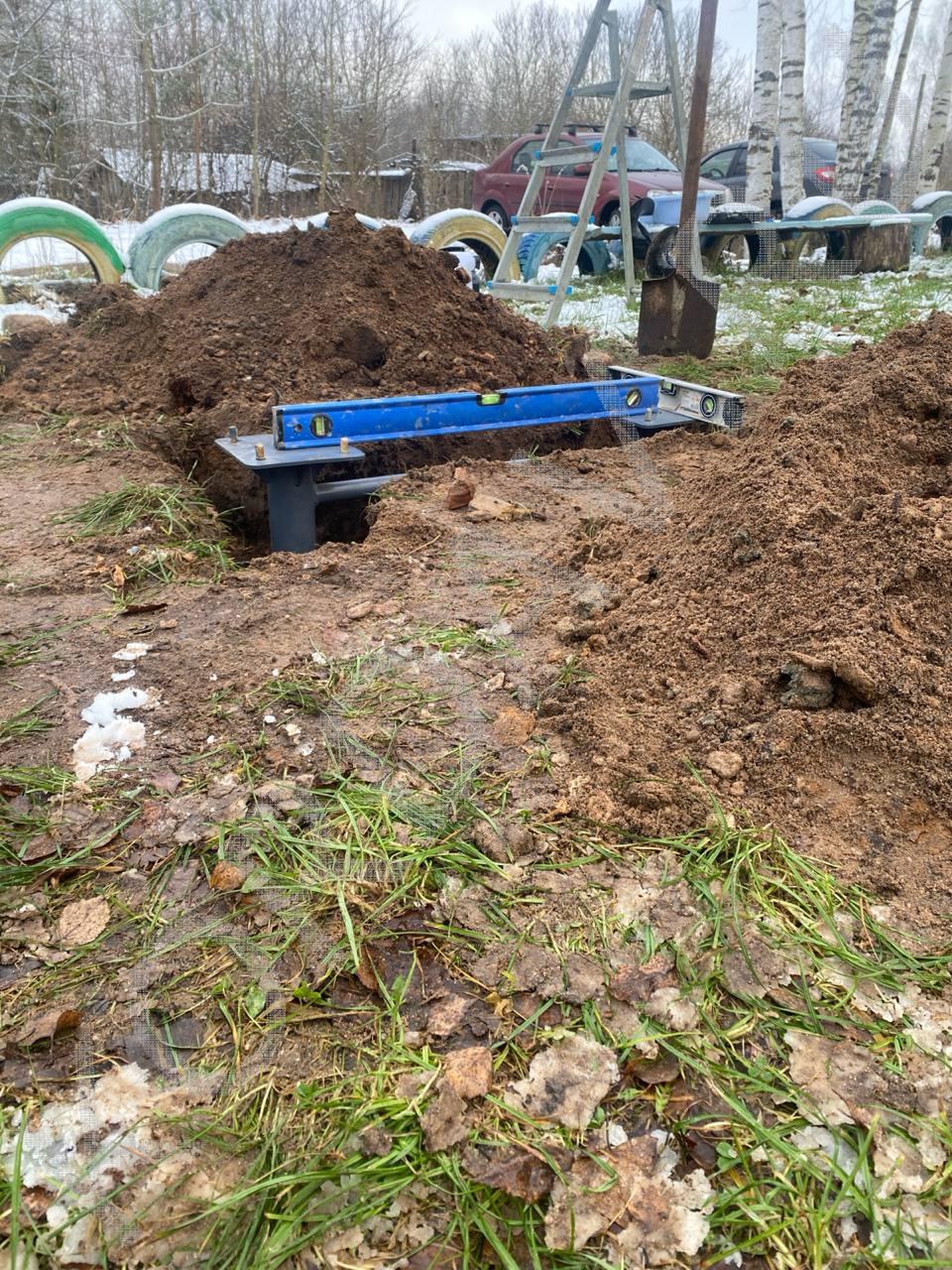 Процесс установки оборудования для детской площадки.
